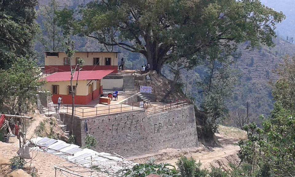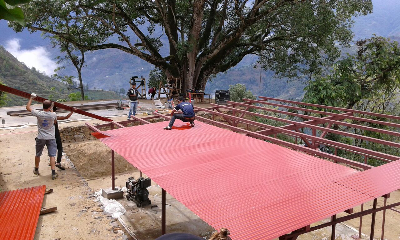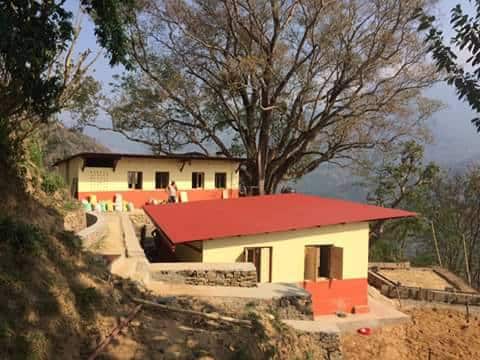 Tras el terremoto que afectó a Nepal en abril de 2015 la asociación Hugging Nepal impulsa la reconstrucción de la escuela Shree Bhumedevi Primary School de Gahare (Nuwakot) – un pequeño pueblo situado a 8 horas en el norte de Katmandú. El proyecto se lleva a cabo conjuntamente entre la asociación y las familias, siendo estas últimas las encargadas de la construcción de la misma mientras que Hugging Nepal aporta medios técnicos y económicos. El proyecto, tiene voluntad de ir más allá del edificio-escuela generando espacio público para que actúe de punto de encuentro de una población disgregada por la extensa vertiente que caracteriza La construcción viene determinada por los materiales disponibles y la viabilidad de hacerlos llegar a un espacio remoto y accidentado en el que la carretera más cercana se encuentra a 3km.