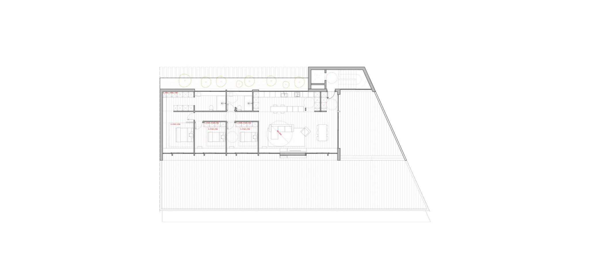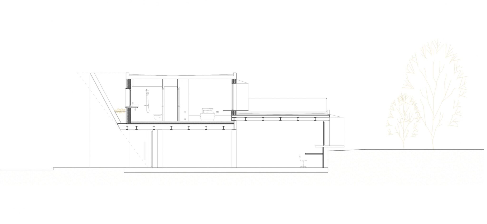 Se plantea la construcción de una vivienda sobre en un tallerProyecto de ampliación de un taller de reparación de televisores en Sant Joan les Fonts (La Garrotxa). El proyecto de partida trata de un taller proyectado por RCR Arquitectes en 2004 y la voluntad de construir una vivienda en la planta primera. La propuesta tiene como premisa integrar la nueva volumetría en el proyecto original (inacabado) consistente en un volumen de acero que se abre hacia la esquina sur – y los volcanes del cuadrado, el claperols y el repaso- y se cierra en la esquina norte mediante unas costillas metálicas que resiguen el perimetro de la edificación. Con este esquema resolvemos la ampliación situando las piezas servidoras en la esquina norte – iluminadas a través de un patio- y el estar, el comedor, la cocina y las habitaciones en la esquina sur.