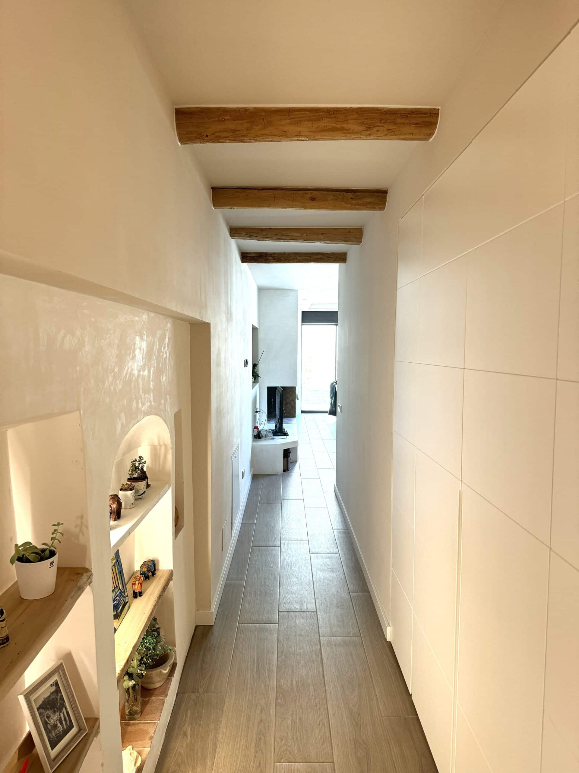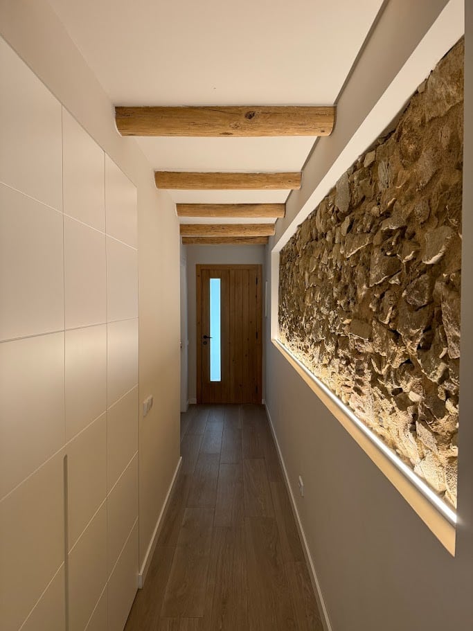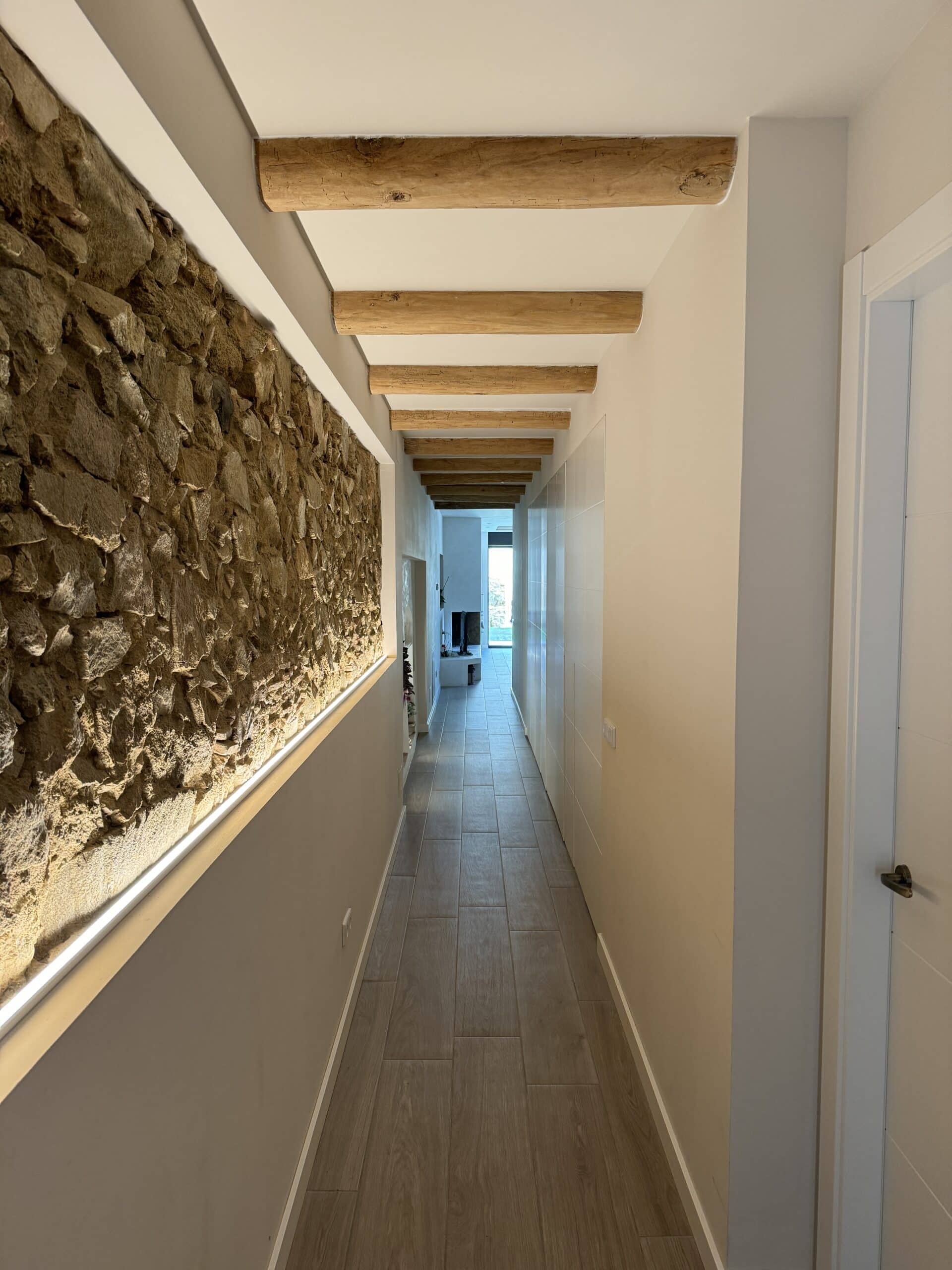 A nivell material, s’han recuperat bigues de fusta i murs de pedra, posant en valor les preexistències. Alhora, s’han incorporat les millores habituals d’eficiència energètica: aïllaments, fusteries d’altes prestacions i sistemes aerotèrmics per a ACS i sòl radiant.El resultat és un projecte que reinventa un habitatge unifamiliar per acollir una nova família, estirant al màxim les possibilitats de la normativa i combinant memòria constructiva amb criteris d’eficiència actuals.