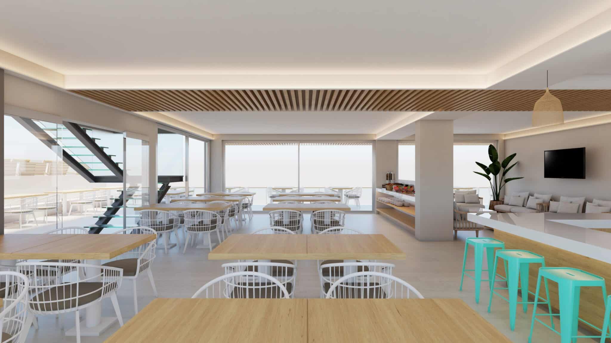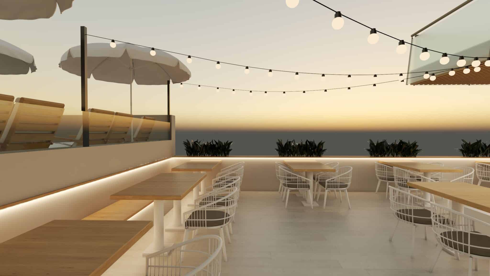 Les propone la reforma del comedor y los espacios comunes exteriores así como un restyling de las terrazas de ámbito privativo con objeto de aumentar la calidad del servicio y las instalaciones.